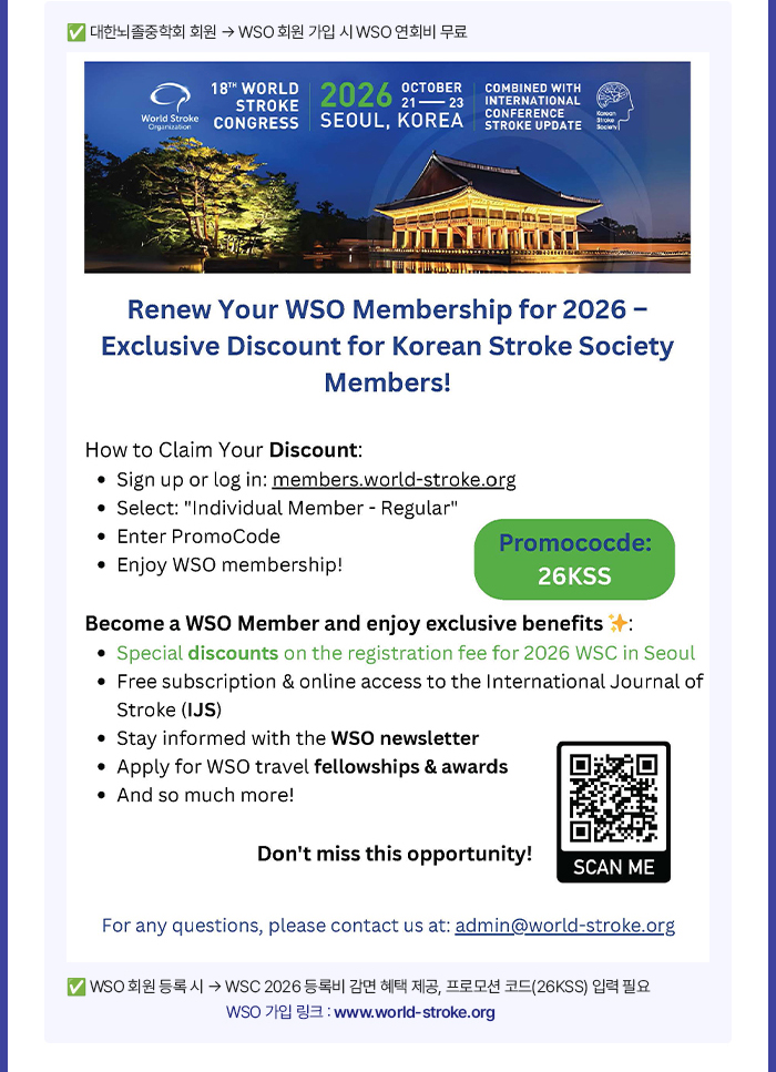 안녕하십니까. 국내외 뇌졸중 뉴스 및 학회소식을 알려드립니다.