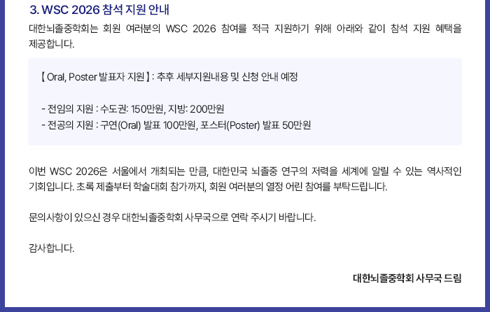 안녕하십니까. 대한뇌졸중학회 소식을 전해드립니다.