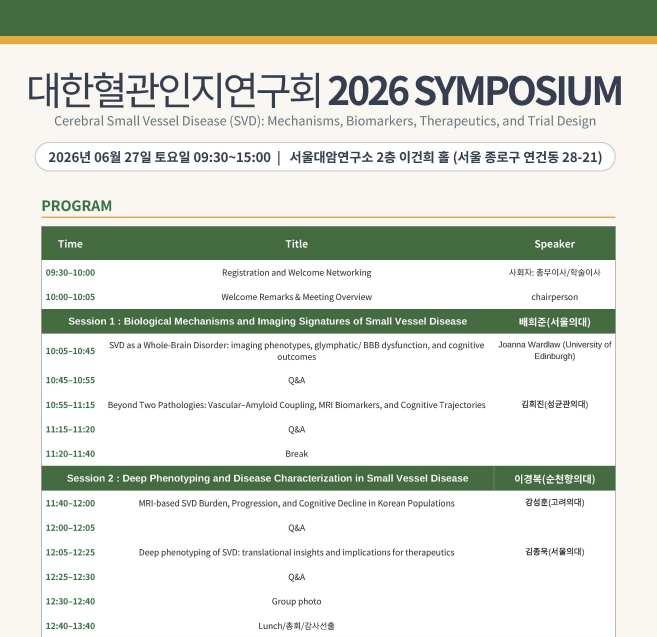 [대한혈관인지연구회] 대한혈관인지연구회 2026 학술 심포지엄