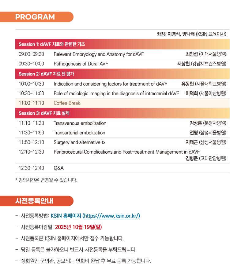[대한신경중재치료의학회] 2025년 대한신경중재치료의학회 가을 보수교육