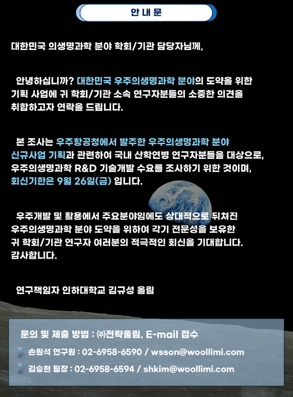 [우주항공청] 우주항공청 우주의생명과학 신규사업 기획을 위한 수요조사