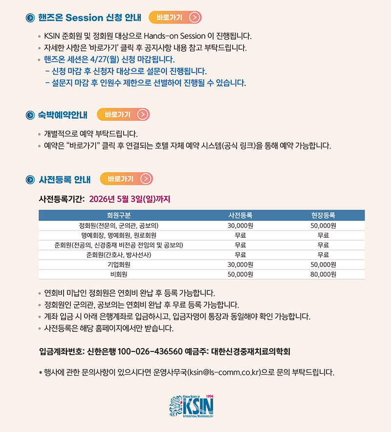 [KSIN] 2026년 대한신경중재치료의학회 봄 보수교육